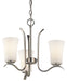 This 3 light mini chandelier from the Armida(TM) collection is filled with interesting touches, clean lines and simple structures. The unique silhouette brings height and dimension to the Brushed Nickel finish.