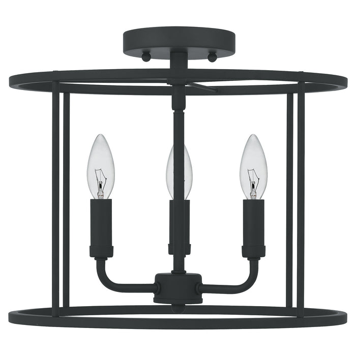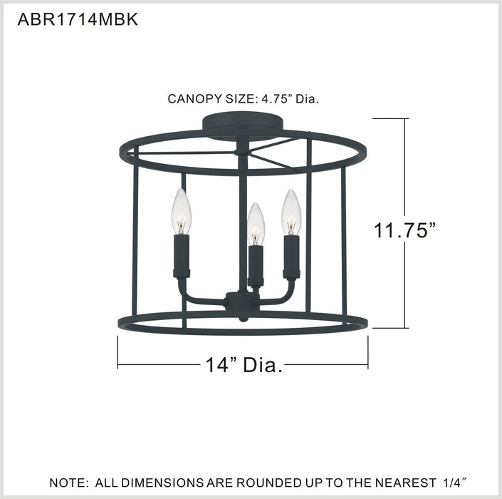 Three Light Semi Flush Mount from the Abner collection in Matte Black finish